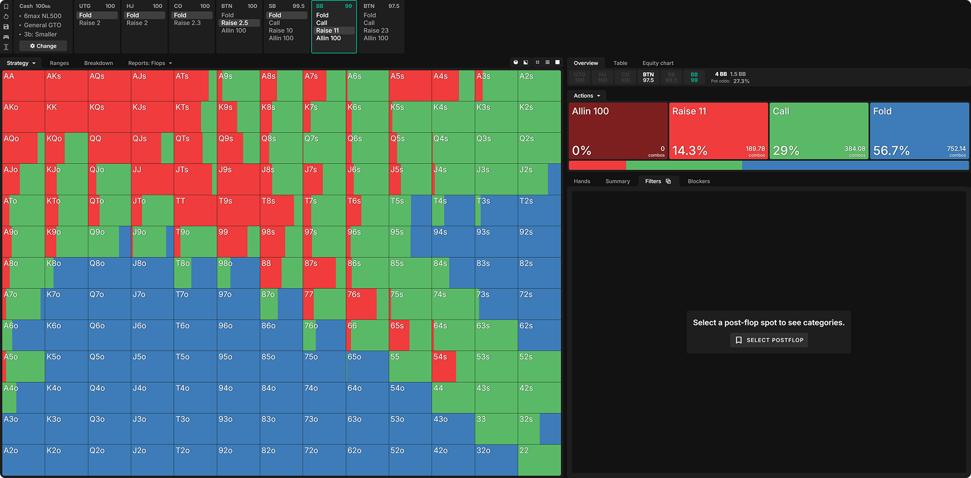 多くのプレイヤーは、強いハンドでプリフロップから積極的に3ベットし、できるだけ早くポットを大きくしたいと考えています。しかし本当の難しさは、3ベットに使うべき適切な弱いハンドを見つけることにあります。BBという特殊なポジションでは、適切なブラフコンボを見極めるのはほぼ不可能に感じるかもしれません。特にプリフロップのレンジ表を一度も勉強したことがない場合はなおさらです。