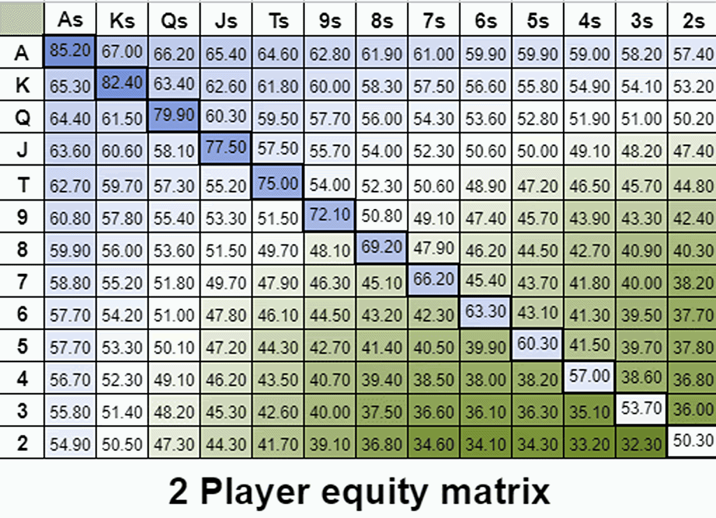 プレイヤーを増やすと、エクイティのグラデーションは、ナッツを作る確率の高いより多くのスートとコネクテッドハンドに移ります。