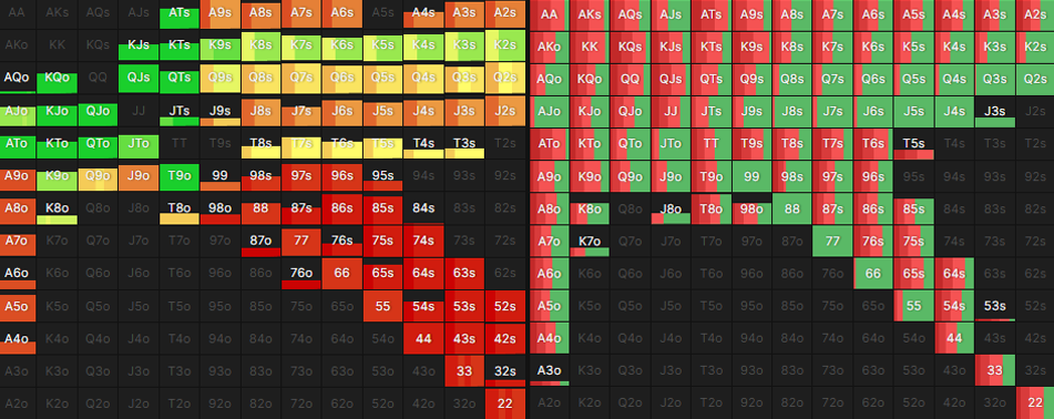 この記事での「自身の戦略を公開する」とは、下記のようにどのようなスポットでどのように自分のレンジをプレイしているか相手が知っていることを意味しています。